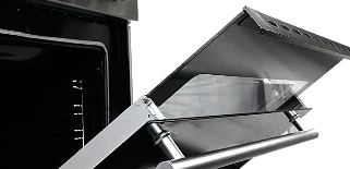 همچنین 2 سیخ جوجه گردان با دو موتور مجزا دیگر ویژگی این اجاق گاز محصوب می گردد که شیشه جلویی قسمت فر کشویی است و با جداکردن آن از اجاق می توان شیشه را تمیز و همچنین با قراردادن یک ظرف آب داخل فر و روشن نمودن فر میتوان نبست به تمیزکردن فر اقدام نمود
