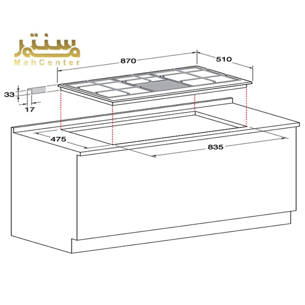 - ابعاد محدوده پخت چپ 260 – 240 میلیمتر با قدرت 3.25 کیلو وات