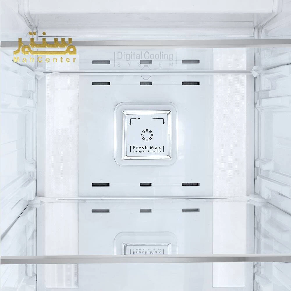 این یخچال ساید بای ساید یک طراحی نوآورانه در درب سومش دارد. درواقع یک پنل استیل داخل درب سوم استفاده شده است که سرما را حفظ و نگهداری میکند و تازگی موادغذایی را حفظ میکند.