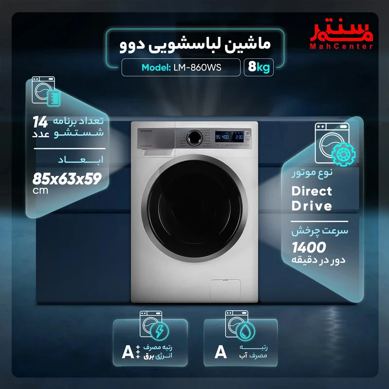 ماشین لباسشویی دوو سری ذن لایف 8 کیلویی مدل LM-860WS