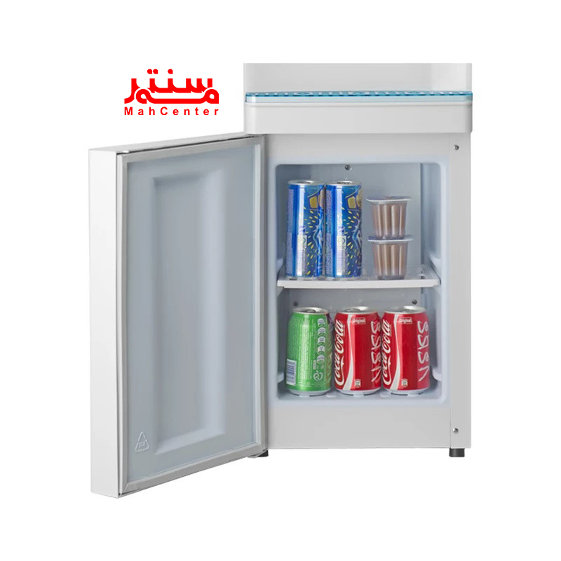 یکی از ویژگیهای برجسته این مدل، یخچال کوچک تعبیهشده در قسمت پایینی دستگاه است که فضایی مناسب برای نگهداری نوشیدنیها، بطریهای کوچک یا مواد غذایی فراهم میکند. این یخچال برای محیطهایی با فضای محدود که امکان استفاده از یخچال جداگانه وجود ندارد، بسیار کاربردی است. منبع آب در قسمت بالایی دستگاه قرار میگیرد و از منابع استاندارد 10 تا 20 لیتری، چه عادی و چه فیلتردار، پشتیبانی میکند. این امکان به شما اجازه میدهد تا از آب تصفیهشده و باکیفیت استفاده کنید.