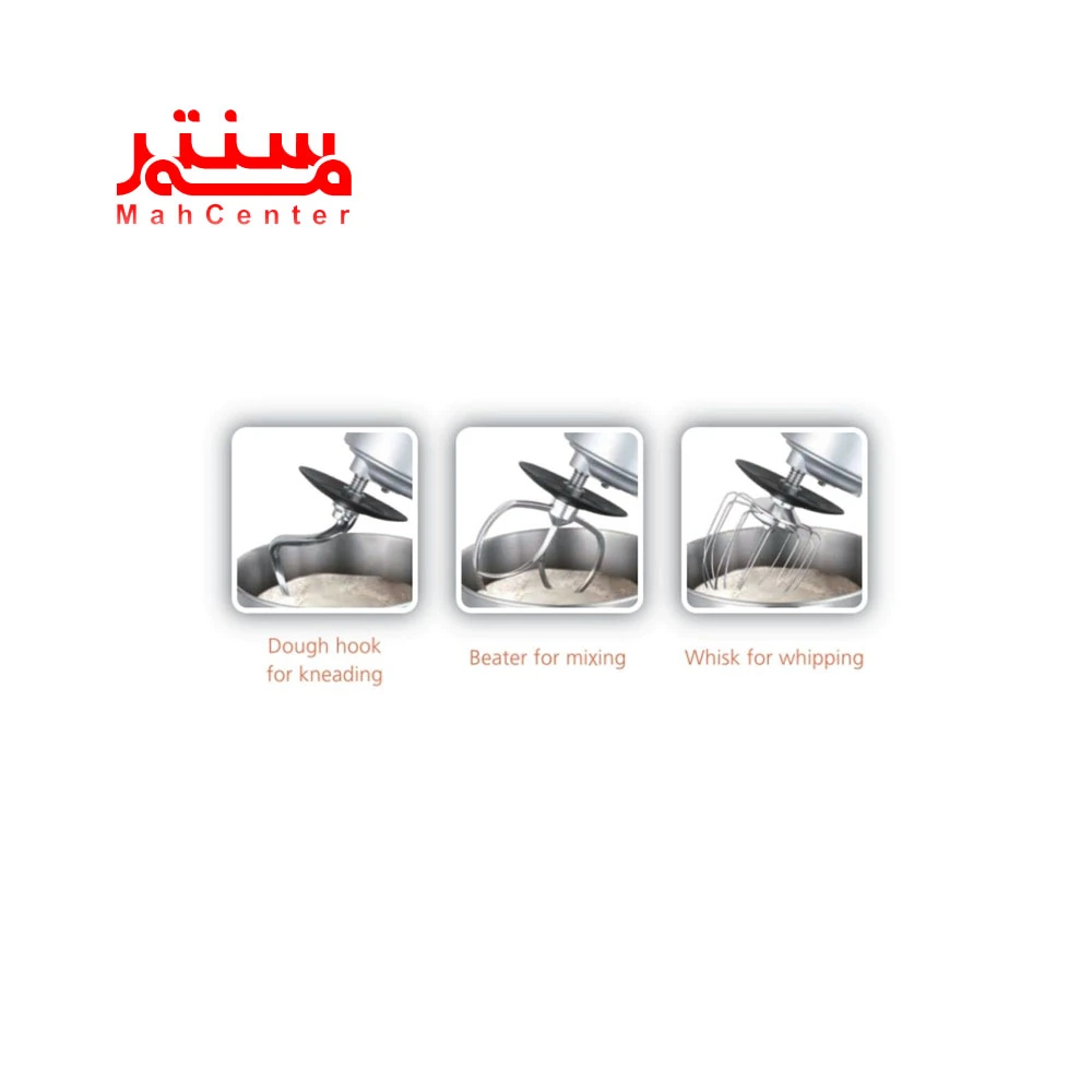 - سه سری تخصصی از استیل ضدزنگ: شامل چنگک خمیر برای ورز دادن، همزن تخت برای مخلوطهای صاف و همزن بادکنکی برای زدن سفیده – هر کدام برای نتیجهای حرفهای بهینه شدهاند.