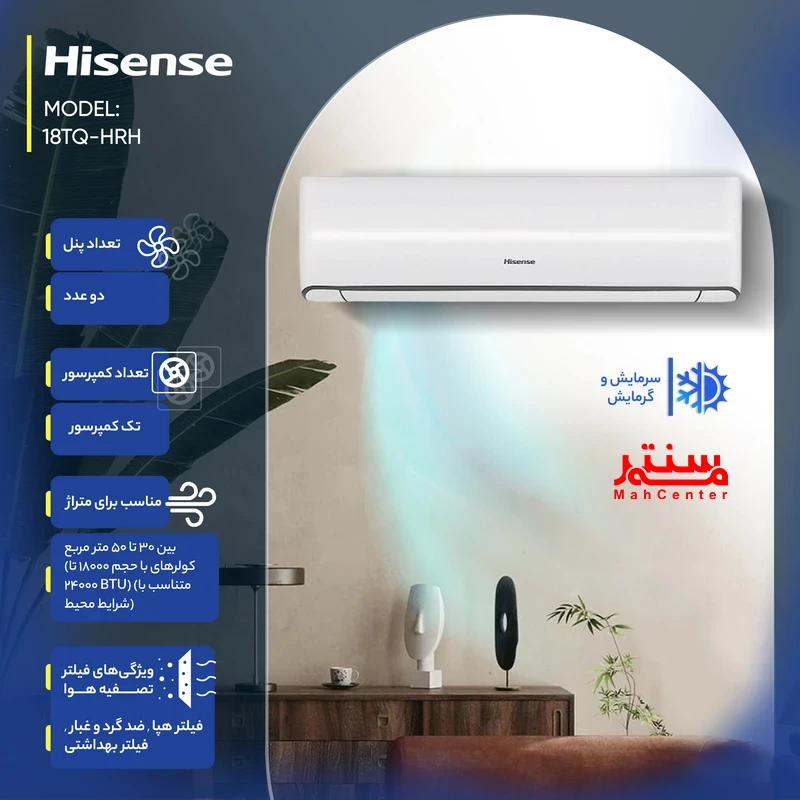 اگه به دنبال راحتی، کیفیت و آسایش در تمام فصول سال هستید، کولر گازی 18000 هایسنس مدل HRH-18TQ بهترین انتخاب برای شماست. همین حالا از فروشگاه اینترنتی مه سنتر سفارش بدید و از خنکی تابستون و گرمای دلپذیر زمستون لذت ببرید. فرصت رو از دست ندید و فضایی ایدهآل برای خودتون و خانوادهتون خلق کنید!